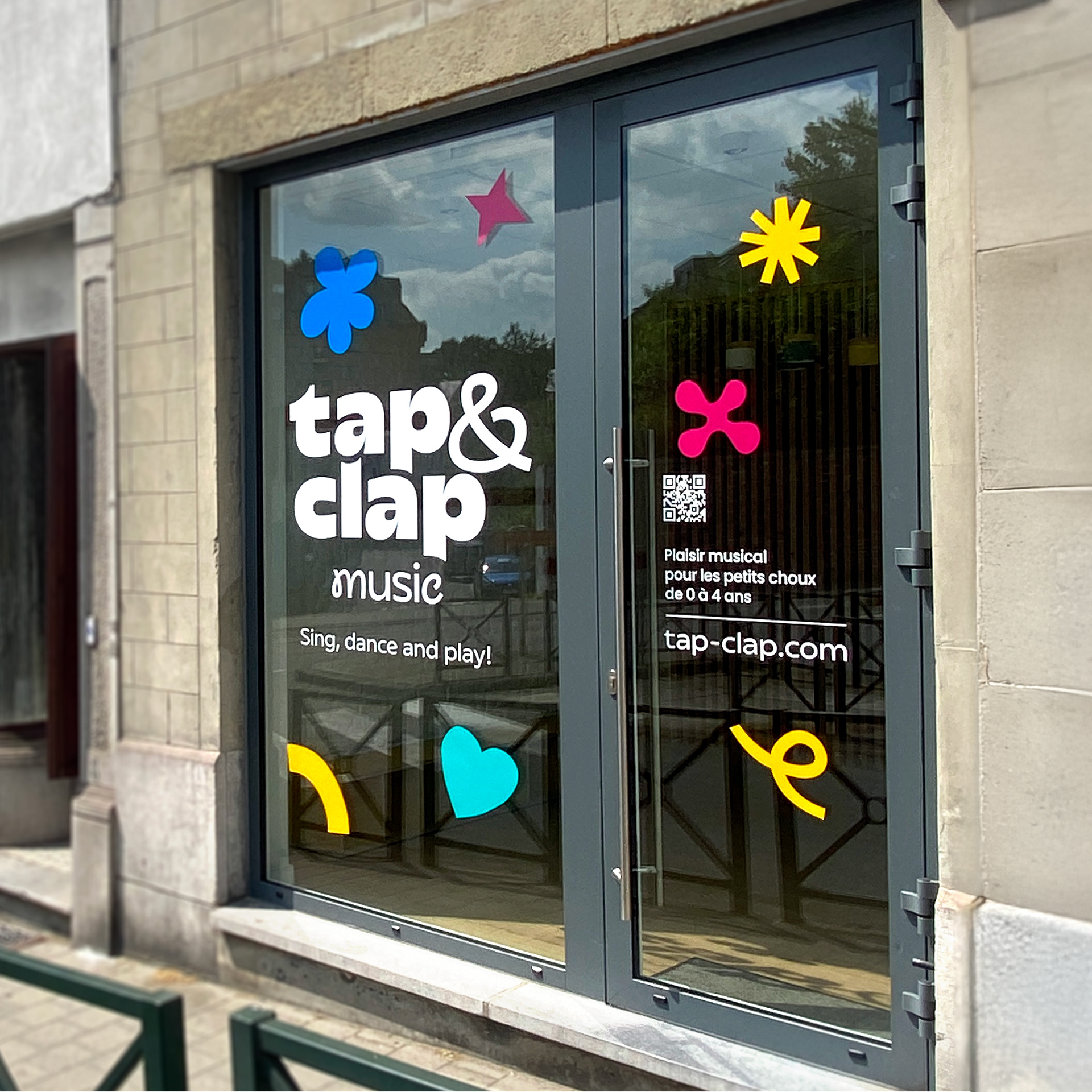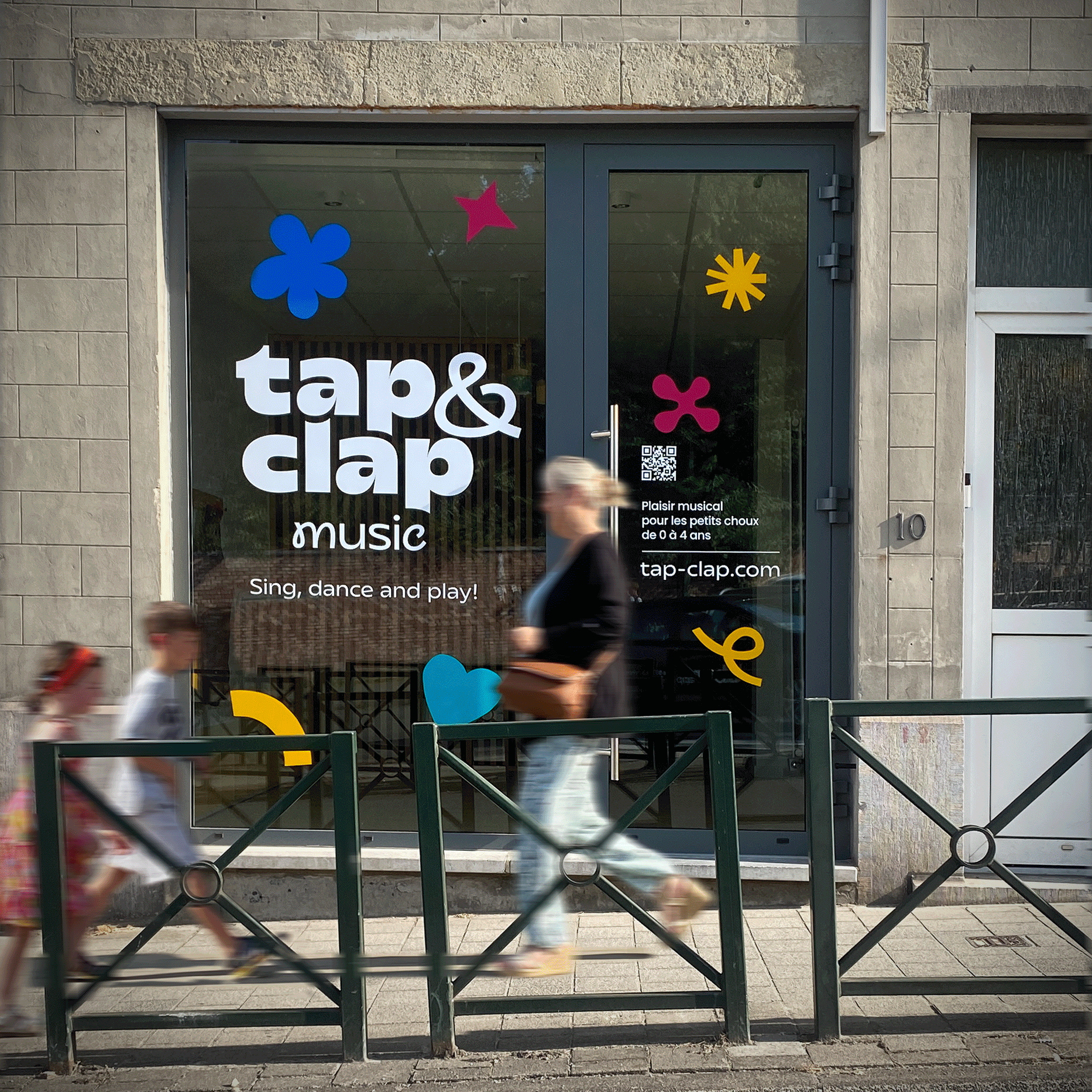 Hidden in plain site on a busy intersection, Tap and Clap's music school was easy to miss. With an impractical logo and an empty shop window, they wanted a fun identity that would turn heads, adding playful energy and real street presence to their brand.